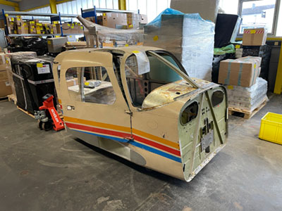 Mitunter kuriose «Pakete» werden in den XXL-Shop in Waldshut geliefert. Unsere Mitarbeiter staunten diese Woche nicht schlecht, als ein halbes Flugzeug auf einer Europalette angeliefert wurde. Auf die Anfrage beim Empfänger, will der begeisterte Privatpilot und Programmierer Stefan M. aus der Flugzelle einen Flugsimulator bauen, um weiteren Personen das Verständnis und die Faszination für das Fliegen weiterzugeben. Natürlich steht der Spass am Bau eines Flugsimulators und die Herausforderung dazu im Vordergrund. Besten Dank für die Erlaubnis diese Story und die Fotos zu teilen.